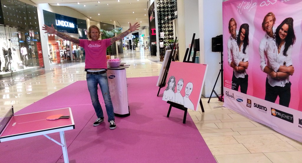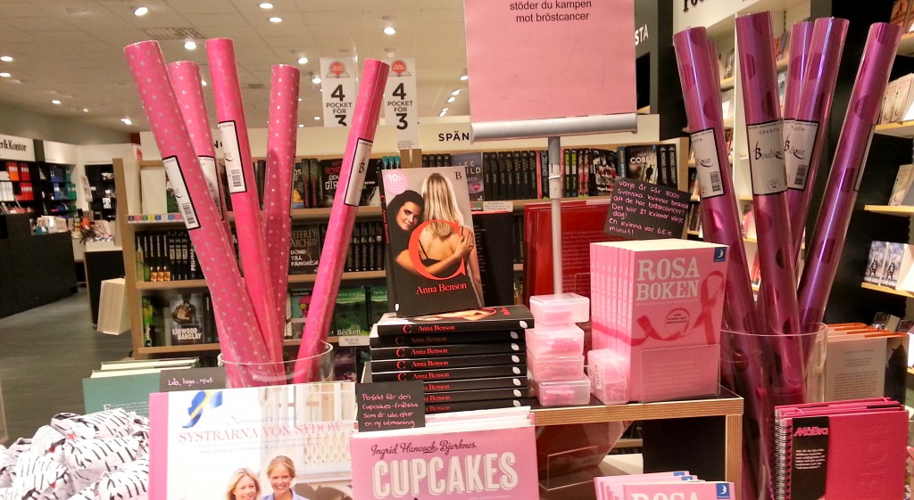 Igår besökte vi Grand Samarkand i Växjö. Lite familj kom förbi och såväl Annas pappa som bror hälsade på. Annas bok C var dessutom fint placerad i Akademibokhandeln. Visste ni att Grand Samarkand precis har vunnit pris som Sveriges bästa köpcentrum? Och visst är det läckert. Allt skiner och blänker och utbudet med nästan 70 butiker är en härlig mix. Man kan inte låta bli att bli lite shoppingssugen. Men igår var vi där och samlade in pengar till kampen mot bröstcancer.
