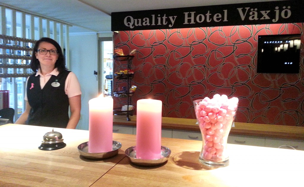 Nu checkar vi ut från Quality Hotel i Växjö som har varit vårt hem för några nätter. Tänk vad alla hjälper oss längs resan. Helt fantastiskt. Tusen tack för det! På Quality Hotel i Växjö var väldigt mycket rosa. Allt från ljus och godis i receptionen till drömmar som konditorn hade bakat. Stort tack för att ni hjälper oss inte minst får oss att känna oss som hemma. 19 nätter på hotell nu…
