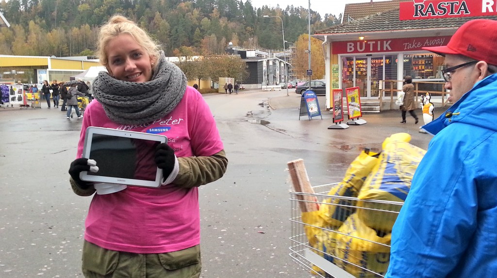 Igår var vi tillbaka i Ullared igen. Det är alltid väldigt mycket folk där även om det kändes lite lugnare just igår. Ellen i vår crew var som alltid på glatt humör och spred budskapet om Måla Rosa. Inte minst digitalt. Nu har vi gjort Ullared för denna gång och istället intar vi Småland för några dagar.