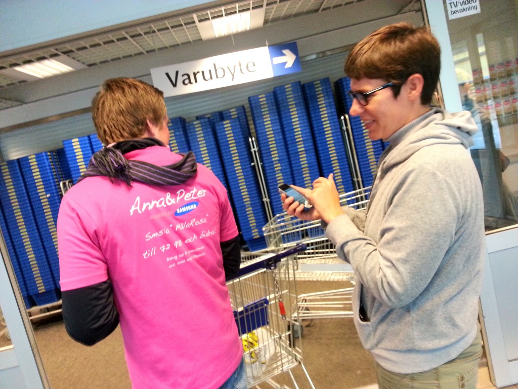 Det är så bra med t-shirts som har enkla budskap. Så snart någon önskar bidra vänder vi dem ryggen… Där finns alla instruktioner du behöver för att bidra. Skriv MÅLAROSA tll 72 988 så är du med och bidrar med 50 kr. Martin i vår crew är en hejare på att vända ryggen till.