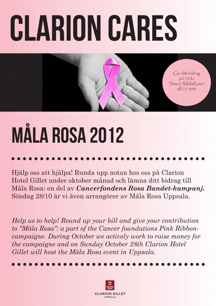 - Måla Rosa var ett insamlingsprojekt till förmån för Cancerfondens stora Rosa Bandet-kampanj 2012. Projektet drevs och startades av Anna Benson och Peter Sköld, ambassadörer för Rosa Bandet 2012 och båda anhöriga till cancern.