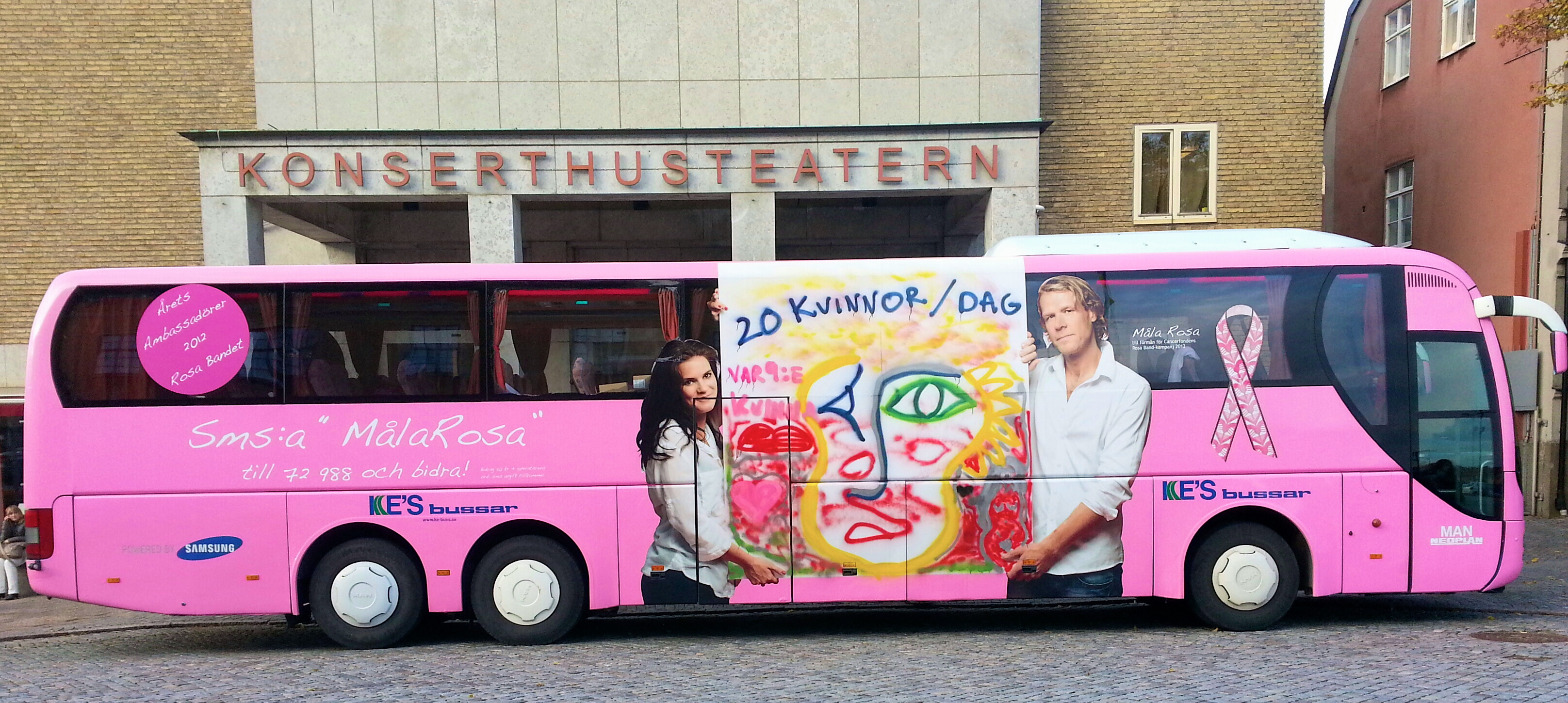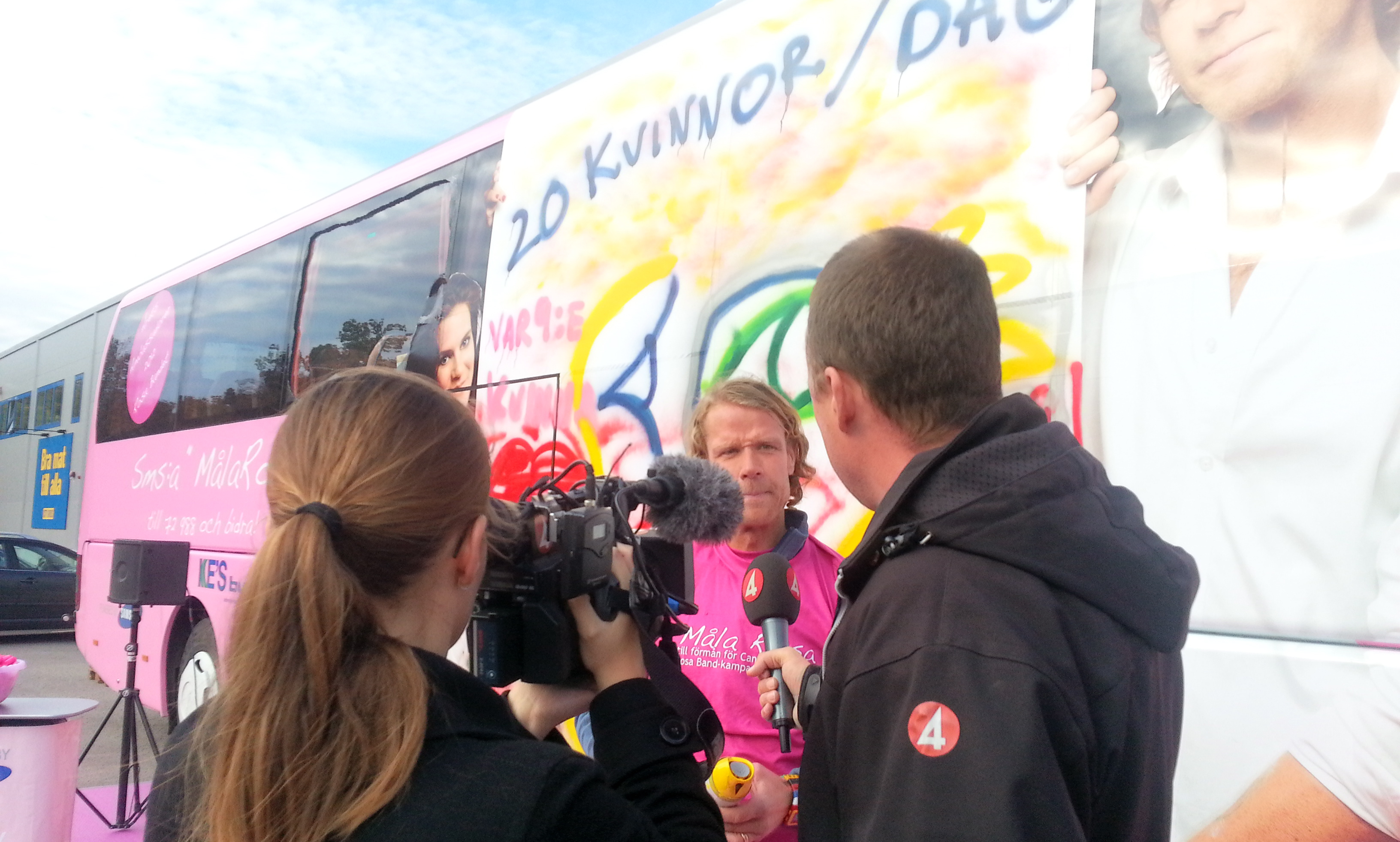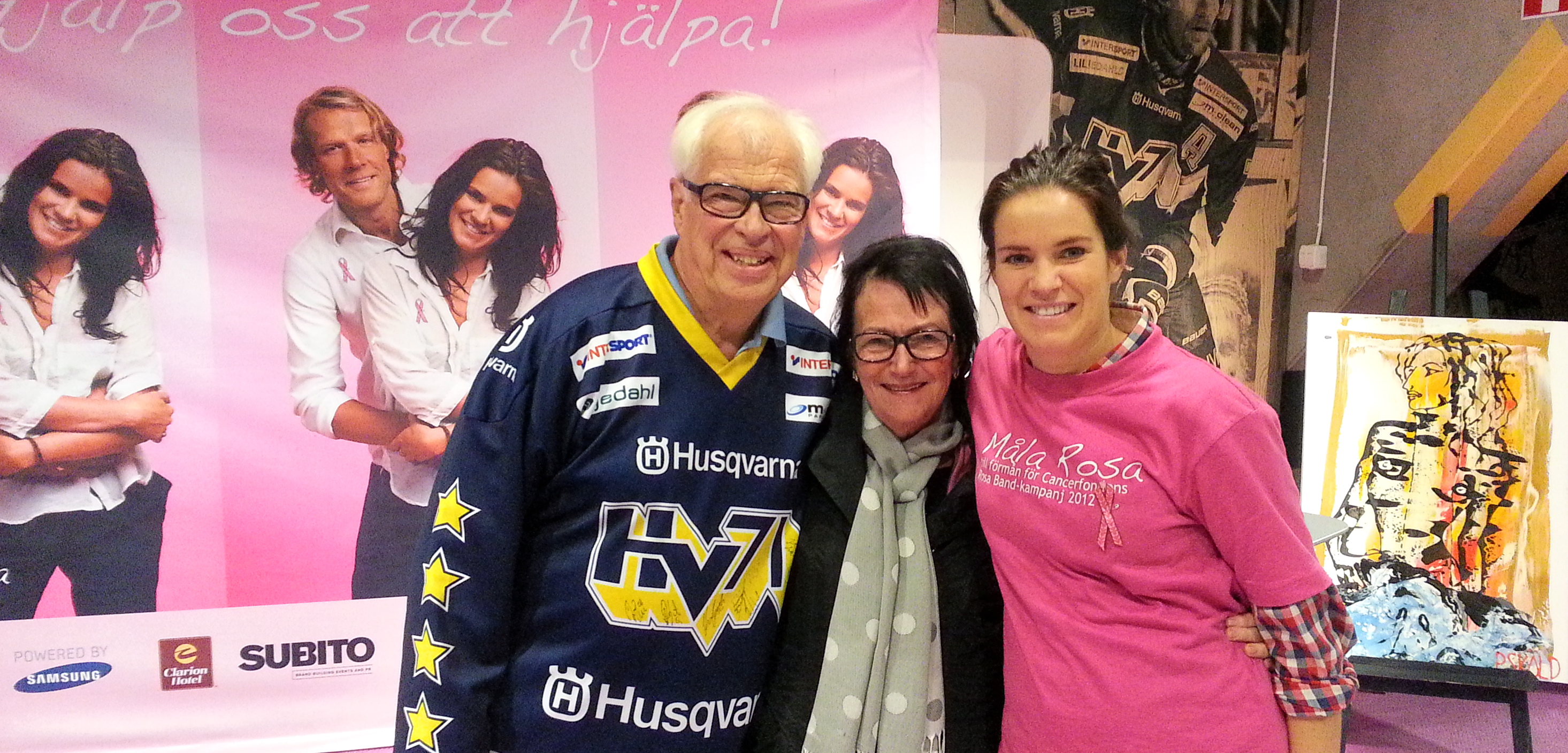 Igår besökte vi Johan Glans för sista gången under denna turné. Turen hade kommit till Karlskrona där han hade dubbelföreställningar på Karlskrona Konserthusteater. Utsålda! Han är helt otroligt. Och vi passade faktiskt på att kika på första föreställningen. Kul med ett avbrott. I övrigt träffade vi cirka 1600 Karlskrona bor denna kväll. Tack alla ni för era bidrag! Känns kul att se att så många människor bryr sig och vill vara med och bidra. Hela Annas familj var på plats och klädde sig i Måla Rosa. Underbart.