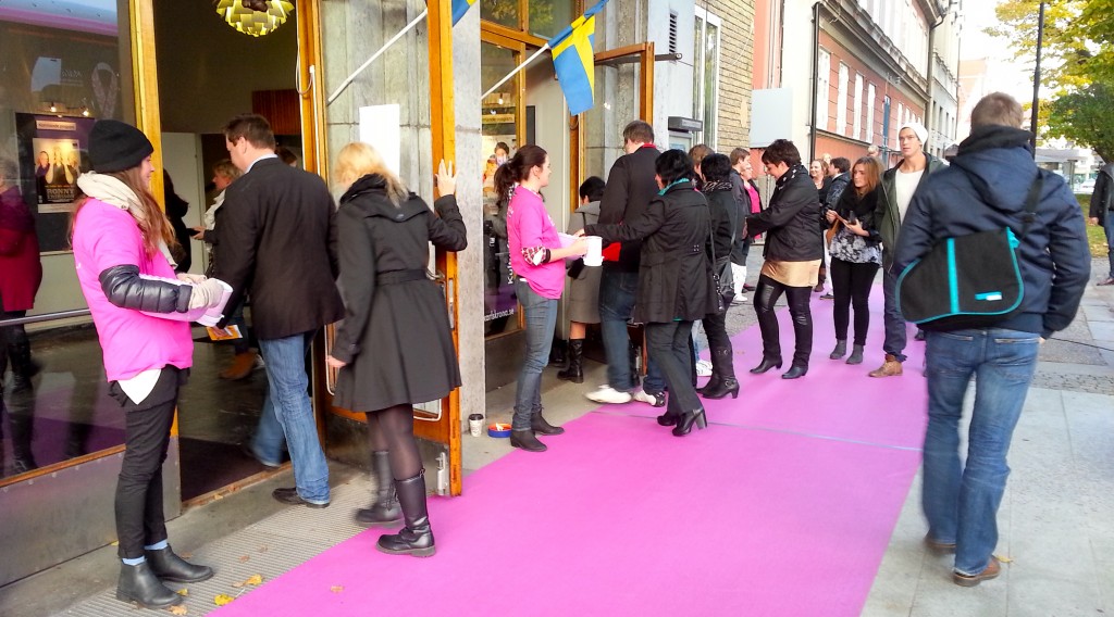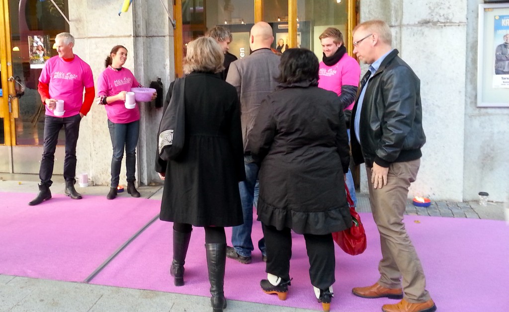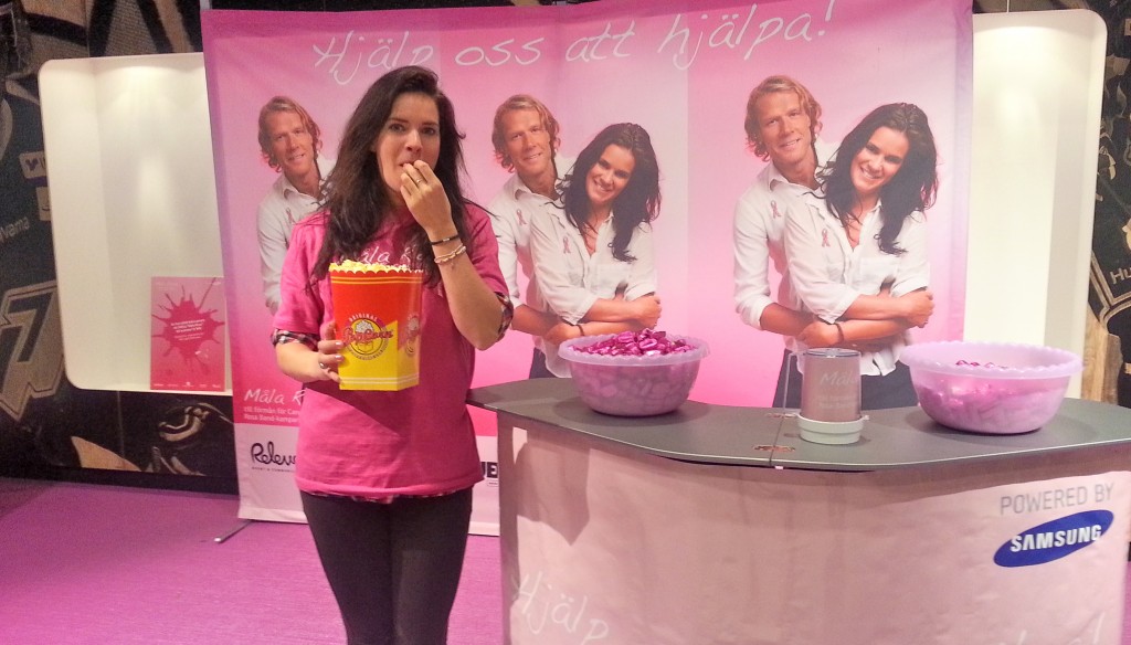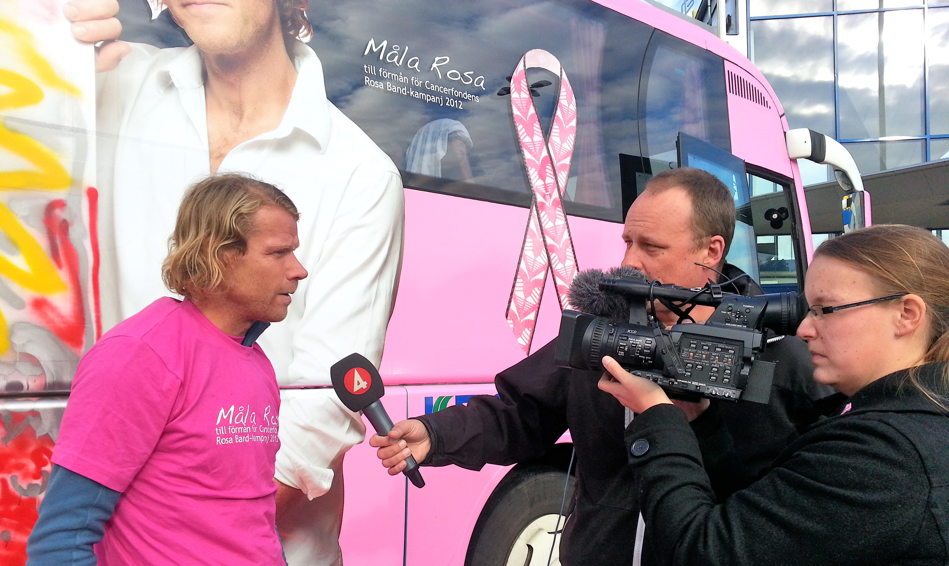 Igår besökte vi Johan Glans för sista gången under denna turné. Turen hade kommit till Karlskrona där han hade dubbelföreställningar på Karlskrona Konserthusteater. Utsålda! Han är helt otroligt. Och vi passade faktiskt på att kika på första föreställningen. Kul med ett avbrott. I övrigt träffade vi cirka 1600 Karlskrona bor denna kväll. Tack alla ni för era bidrag! Känns kul att se att så många människor bryr sig och vill vara med och bidra. Hela Annas familj var på plats och klädde sig i Måla Rosa. Underbart.